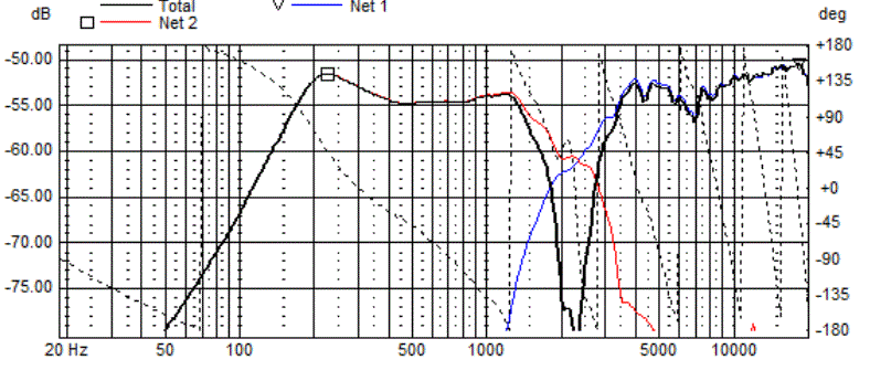 Certainly no surprises there. Slighly less of a dip in the tweeters response compared to the T40 and of a rise too. I blame cabinet diffraction for the dip.