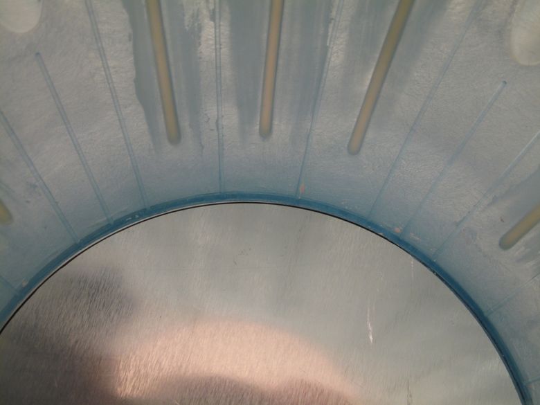 Below shows one half of a 30cm sphere and the two cones side by side. Unfortunately I do not have a picture of an unmodified hamster ball.